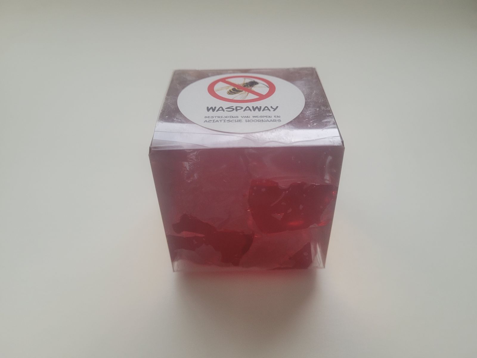 Doosje kubus: 1 doosje bevat 8 Waspaway Vespid cubes© van ongeveer 2,5 x 2,5 x 2,5 cm. Prijs: € 5,00 incl. BTW (excl. verzendingskosten).